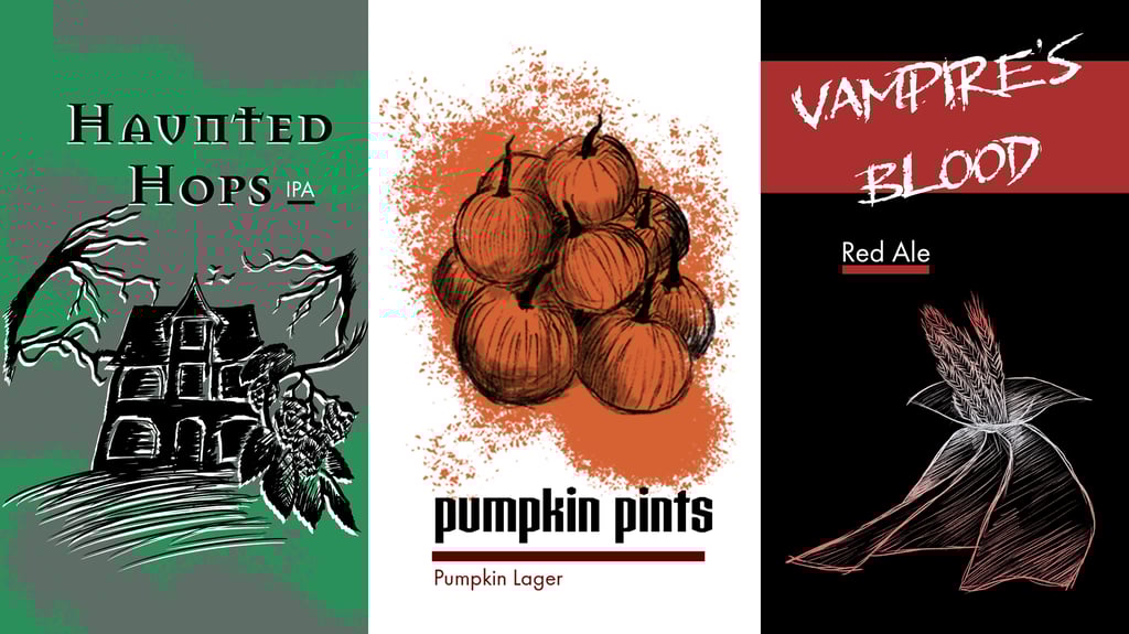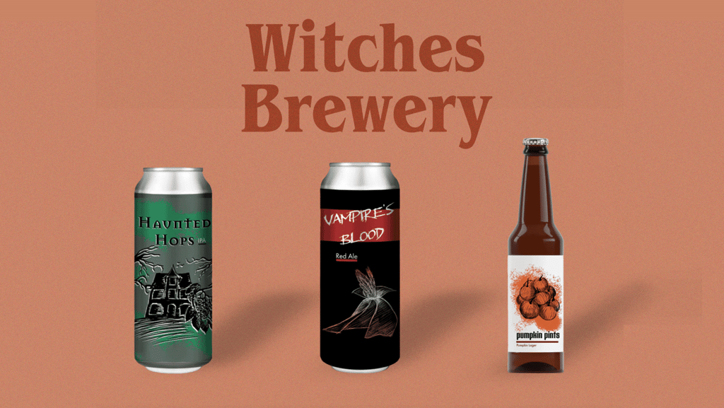 Conceptual brewery Witches Brewery needed help launching three new beers: Haunted Hops (an IPA), Pumpkin Pints (a Pumpkin Lager), and Vampire’s Blood (a Red Ale). They needed some fun and spooky branding to attract people to their booth at Salem MA’s Halloween Festival where they debuted the new flavors.