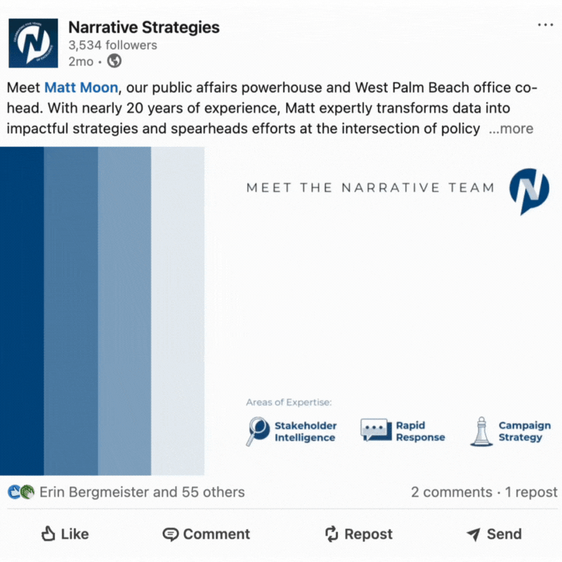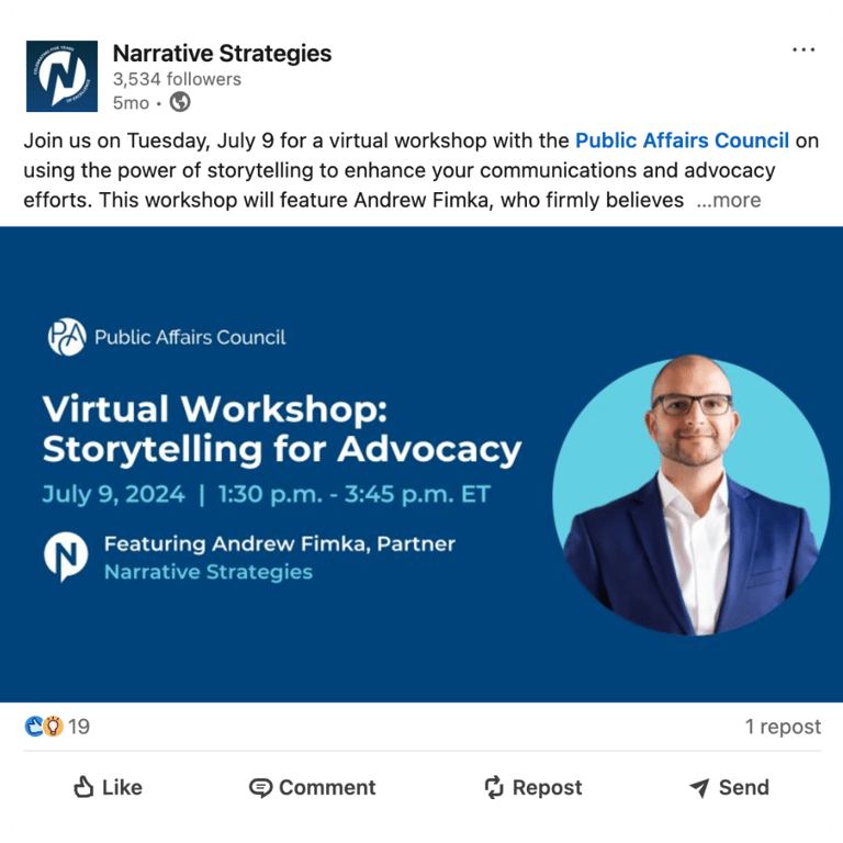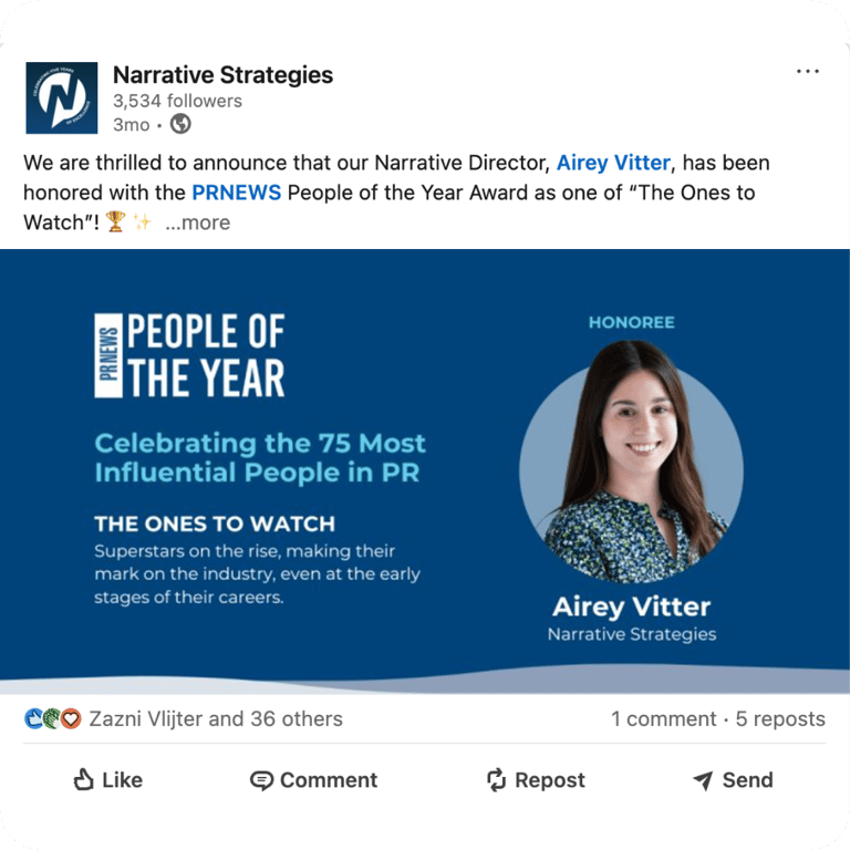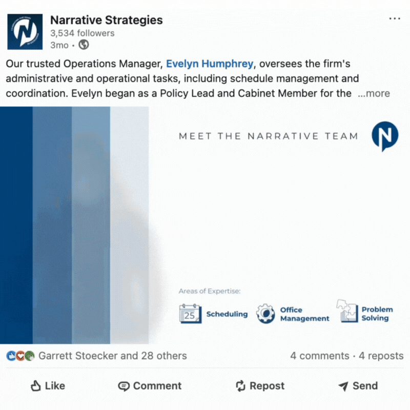 I worked as a Creative Services Intern at Narrative Strategies, an award-winning public relations firm in Washington, D.C.