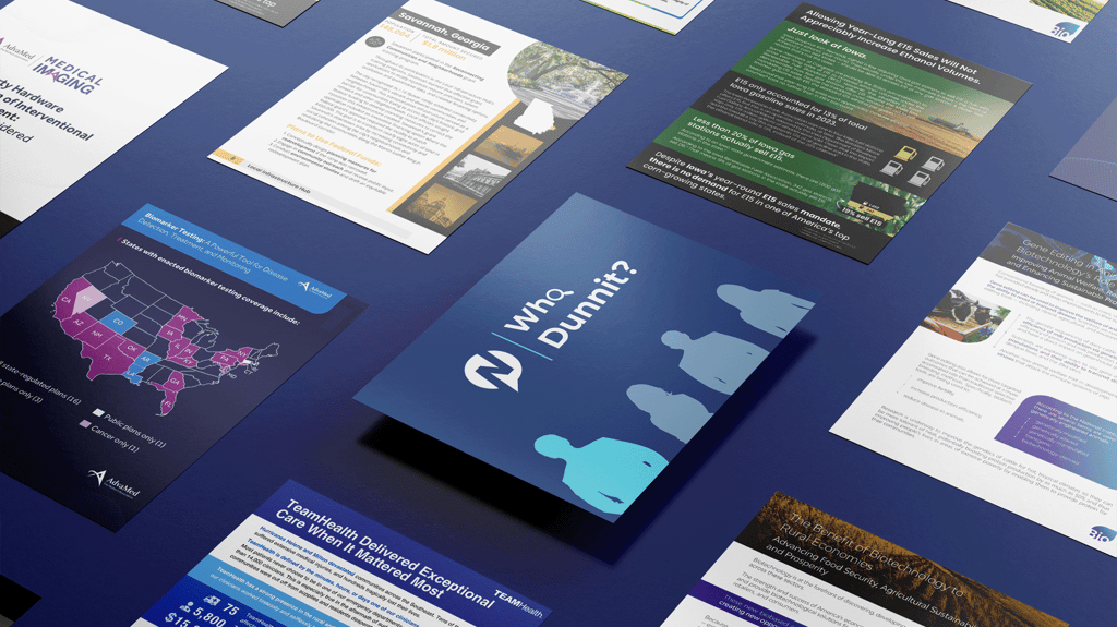 I gained experience working with the design team on larger projects like research reports, slide, decks, and digital ad campaigns for clients in technology, healthcare, and political action.